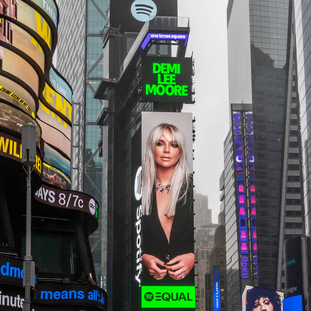 Celebrated Afrikaans music sensation Demi Lee Moore has reached a thrilling milestone in her career, being named the latest face of Spotify’s EQUAL Africa campaign. Her inclusion in this impactful initiative has been marked by a stunning appearance on the iconic Times Square billboard in New York City, highlighting her status as a rising star with far-reaching influence.